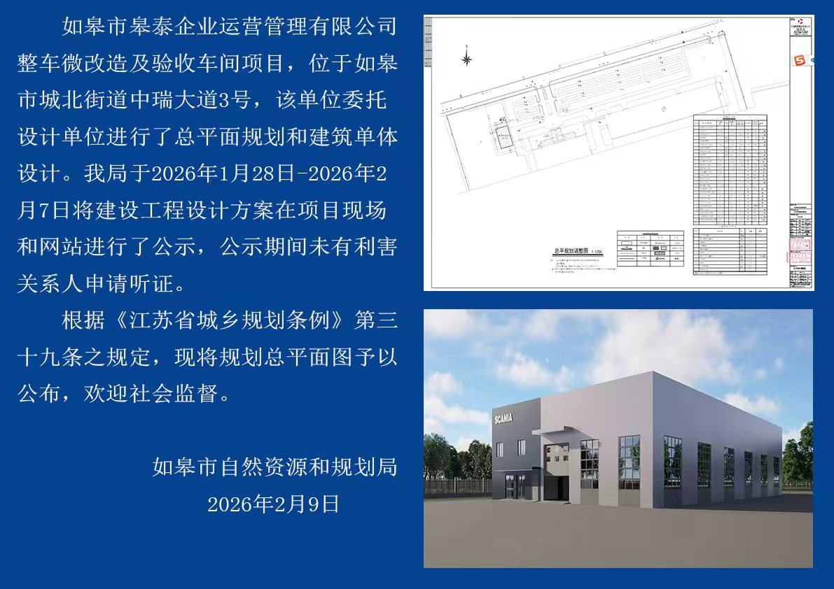 如皋市皋泰企业运营管理有限公司整车微改造及验收车间项目建设工程设计方案批后公布